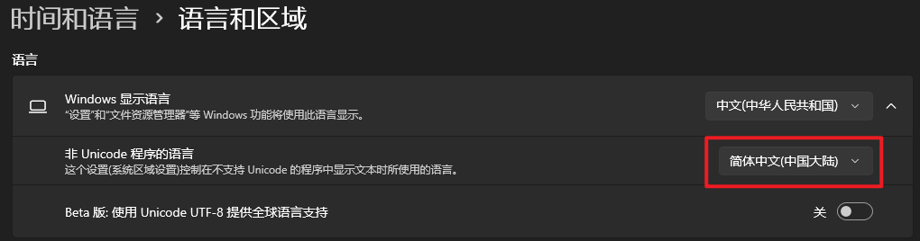 确认下非Unicode程序的语言是不是中文